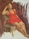 The red dress, Oil on panel, 12"x16".